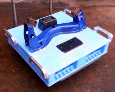倒れて傷が付かないA型エンジン専用プラスチックパレットに載せ