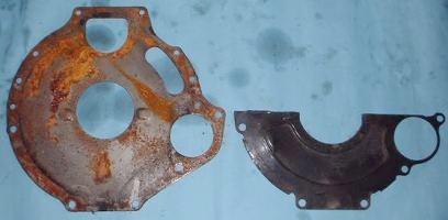 | (左)A14/A15エンジンプレートの厚みは約4.5mmありますので、プレート付きは、その分ディスク面←→クラッチB/gの距離が広がります。。(右)A12エンジンプレートは約1mmの厚さがありますが、取付位置が下側のみなのでディスク面←→クラッチB/g距離は変わりません。 | (左)A14/A15フライホイールと(右)A12フライホイールは厚さが異なります。A12フライホイールの方がA14/A15フライホイールより約4.5mm薄いため、その分フライホイールディスク面←→クラッチレリーズB/g間の距離が広がります。 |