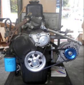 クーラー無しチューンドA型には邪魔物以外の何物でもない。OILクーラーホースが繋がるOILポンプ廻りの整備性が悪い、長〜いファンベルトを介し高回転仕様は恥ずかしい、何てったってエンジンルーム内の特等席にオルタネーターを居座させてる事じたいオカシイ。本来有るべき所のスペースは空いてる。オルタネーター移動キットを使えばエンジンルーム内はスッキリ、レーシーなコックドプーリーkitが更に引き立つ!ご検討下さい 本当はクーラー付き車が羨ましいが、コックドプリーは外せないからさぁ〜・・・の言い訳にも出来るぞ(笑) |