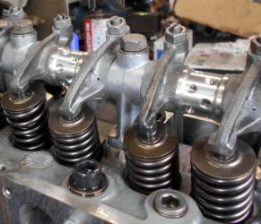 | アルミブラケット5ケにロッカーシャフトがスムーズに通るようにが大切。誰でもロッカーアームがスムーズに作動するか?は点検、微調整し取り付けると思いますが、5ケのブラケットにシャフトがスムーズに通るか?を確認、微調整するのはA型スペシャリストTSメカだけ? ロッカーアームはスムーズに動く、ブラケットへの通りは渋いが関係無いだろう?と そのまま付けるとロッカーアームの動きは凄〜く渋くなります。アルミブラケット内径をフラップホイール等でサラいシャフトがスムーズに通るようにし、プッシュロッドを付けずに仮り組み 規定トルク2.0〜2.5kg-mで締め付け ロッカーアームがスムーズに回るのを確認してから プッシュロッドを取り付け 本組みして下さい。 | ||