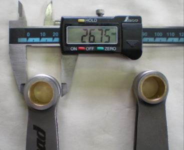 | 18Φピストンピン、19Φピストンピンへ変更の場合にも強度を損なわぬよう小端部をサイズUPしてあります。 ピストンピン径は多少キツ目に設定して有りますのでフラップホイール等で軽くサラい微調整してご使用下さい。 |