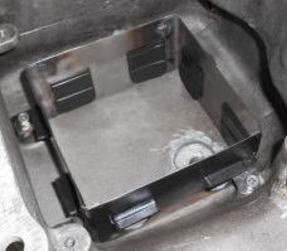 | L汎用ステーにネジ山は切ってありません。位置決めをし溶接後、プレートを載せ穴位置決めをし、穴あけタップネジ切りを行って下さい。 | 耐油性ゴムバルブを4方向に設けて、オイルがボックス内に集まるように設計した組立キット。取り付けには切断、削正、加工、溶接を要します。 | A12〜A15対応 |