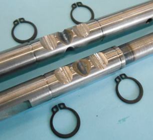 直結5速ミッション(F5C56A)標準サーボシンクロには無い加工、シフトフォークロッド2本に凹加工2ケ所、ストッパーリングをハメる溝切り2ケ所加工を施し、ギヤが入りっぱなしに成り 抜けなく成るトラブル防止対策としてワーナーシンクロキットに行っております。 ワーナーシンクロに変更したオーナーの50%以上は この加工を行わずノントラブルですが、サーキット走行メインのTSサニーに施している加工。この加工をしたからと言って完璧、絶対は御座いませんが、効果は絶大です。 加工に約1週間〜2週間掛かります。 |