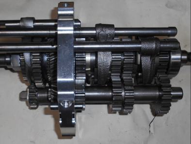 | バネット5速(RS5W60A)のシフトフォークを直結5速(F5C56A)に流用する事によりシフトフィーリングが格段にUPします。 写真右 1st&2ndフォーク取付シャフト穴径を4Φ→5Φに拡大。元穴を拡大するだけですので簡単です、他はボルトオン。 |