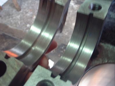 1番、3番、5番のクランクキャップ側とブロック側の溝切り加工