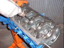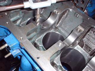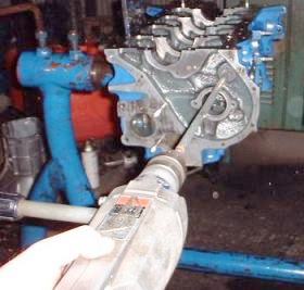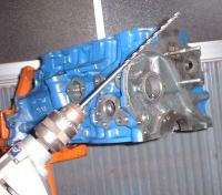 | メイン・ジャーナル部のオイル孔を6.0mmに広げ、オイルの量をふやすようにする。改造にあたって各オイル孔のメクラ栓は、打ち込み式からテーパーネジのメクラ栓に変え、取りはずし可能の状態にする。これは加工後、洗浄を必要とするので、絶対に行わなければならない。特に砂落とし作業などを行った場合、いくら洗浄ガンを使っても、オイル通路に入り込んだ砂は取れないものだ。 | ||