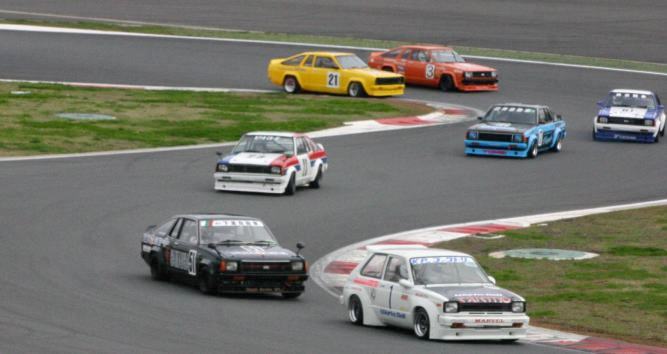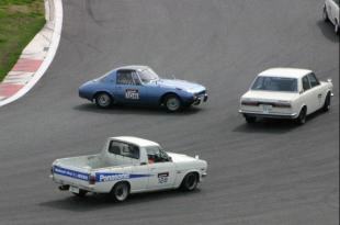 | ♯44サニーを蹴る神崎選手は、B110〜B310で一世を風靡した“オオハシ”(現J,CRAFT)の従業員。マイナーツーリングで活躍した池上吉史氏も専務として在籍しているので、この子(♯44)のフロントガラスに“オオハシ”の4文字が貼られた時が、♯23私の負ける時なんだろ〜な〜・・・と思ってたら貼って来る前に負けてしまった(笑)。 後方はTSカップ初出場ながら見事ポールto2位を決めた♯51プラスワンアオキサニー。今回ステアリングを握ったのはニューFISCOを走り込んだ里山選手だが、オーナーである間瀬氏は1976年レースデビューの大ベテラン(この年に♯48梅久保選手がレースデビュー)。1980年代にスカイライン2000GTRでJCCAレース参加やAE86で富士フレッシュマンレースにも参戦した経歴の持ち主。17年ぶりにTS310サニーオーナーとしてレース界に復帰、昔とったキネヅカでオーナー自らステアリングを握る日も近いかもしれない。 |