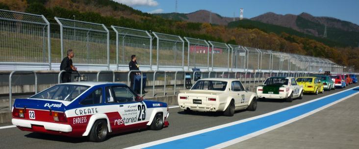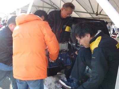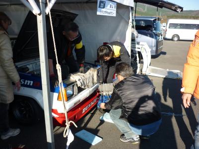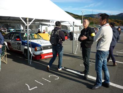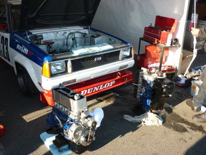 | TSサニーエンジン交換 当時の富士フレッシュマンレースでは当たり前の光景でしたが、今の子達にサーキットでのエンジン交換は有り得ない事のようなのでちょっと解説。A型エンジン総重量は約80kg、2人居ればチェーンブロック無しの手動で交換可能、+2人居ればより楽かな?って感じ。#23号車のスッキリ エンジンルームは見た目のみならずサーキットパドックでのエンジン脱着を想定し整備性抜群に造ってあります。ジャッキUP不要、各パーツ脱着も超簡単にできるよう随所に工夫を施してあります。10月の筑波は分解組み立てが有ったので時間を要したが、今回の所要時間は2時間、移植パーツゼロにし、もう少し#23マシン整備性改良すれば60分切りは無理かもしれないが、設備の整っていないサーキットでも1時間半切りは可能そう。 サーキットでのエンジン交換は『ブローしたのか?アアはなりたくねぇな』と見られて普通。今回のはブローでは無くエンジンテスト、壊してばかりいるダメチームに見られぬよう一応言い訳しときます(笑) エンジン交換完了、始動させるとミッションから異音!エッ?さっきまで何ともなかったのに?ジャッキUPし各ギヤで駆動、どのギヤにもスムーズにシフトでき、異音がピタリと消えちった?ミッションは異音がさらに大きくなり壊れる事はあっても消える症状は考えられない、後で分解した時、あれぇ〜?あの異音は何だったんだろう?の原因不明の方が怖いし後々困る、ミッション屋なのでお客様のフィードバックに生かしたい スペアミッションは持参してる、交換は簡単、正直ギヤ全損は辛いが、分解後の原因不明に悩むより あえてこのまま走らせる、今は異音せず各シフトも正常。ドライバーには異音が出ても動いている間は走り続けろ、シフトが渋くなっても壊してもイイから無理やりシフトしろ!と、自分が言われたらとても出来ない無理難題を突きつけ送り出した・・・ |