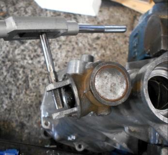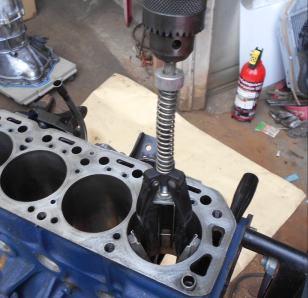 | 燃焼室容積を測定し圧縮比確認 ハイカムは虫食い無く再使用可能 |