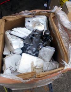 中身までレストアの超無駄で? 超楽しいO/H完了。このミッションとは呼べない大人の玩具を、ヤフオク落札ゴミミッションと同じく小汚ねぇパレットに縛って発送したら全てが台無しなので