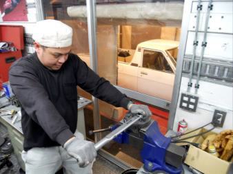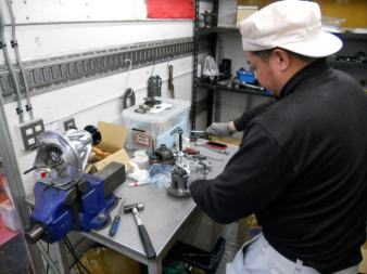 | オーナーが 自分でやって見たい、と言うので、私のアドバイスに 従いながらの作業進行 作業場所提供は無料ですがアドバイス料はボッタくります(笑) |