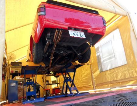 | デフ交換、ミッション交換、エンジン交換、A型サニー限定であればシザーリフトで何の問題も無さそう。中型・大型トラックを含む