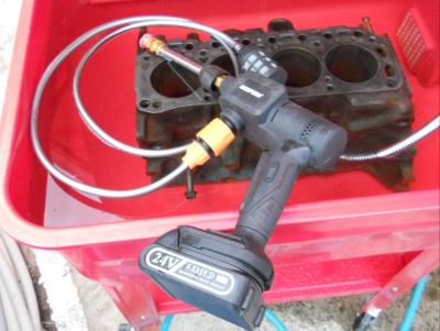 | 安物オモチャの高圧洗浄機だが、バカにしたモンでも無く 中々威力あるので、途中々のチェック方々 コレで小さい水穴に噴射します | ||