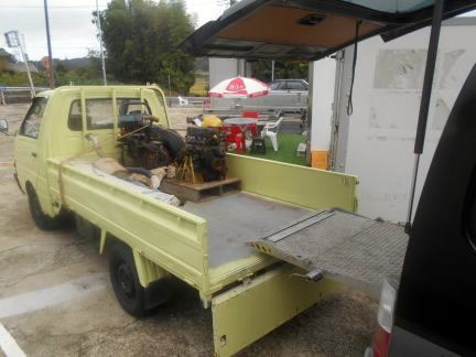 2基お持込み A12シリンダーブロックベースにA14クランクシャフトを使ったA12-1428ccにするのかな? とりあえず直接雨が掛からないテント下で保管 |