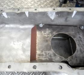 | 貴重なOpt'アルミオイルパン A12用なのでA14クランク装着だとコンロッドが当たるので削正加工 |