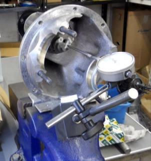 | 厚めのシム1枚抜きの仮り組み、中々イイ数値だ!バックラッシュ調整 楽チンそう♪ 後はリングギヤボルトが当たる面の削正加工かぁ? アルミデフは手間暇掛かる、、、本来組み込めない所に組み込むんだから しょうが無ぇよな? | ||