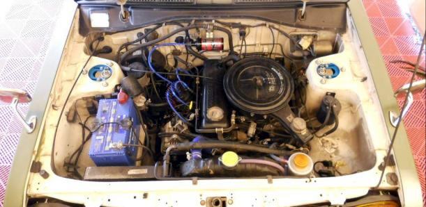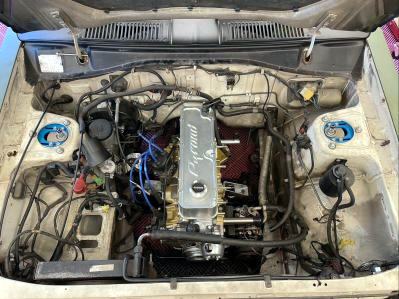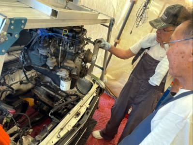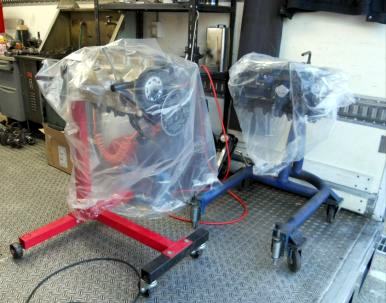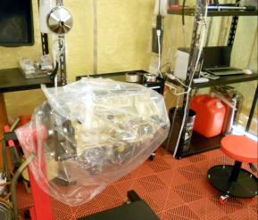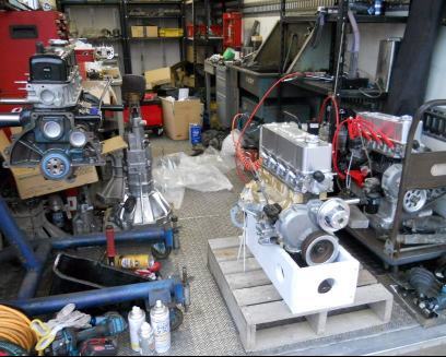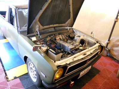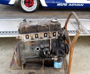 | チューンUP中のA型エンジン この他にA型ベースエンジンが10基近くあります。昔はL型6気筒と混合でしたが、だいぶ前からA型エンジンのみです |