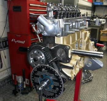| バルブタイミング調整完了! 後は、フロントカバー、オイルパン、その他、付ければ完成 もう少しです |