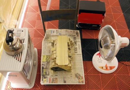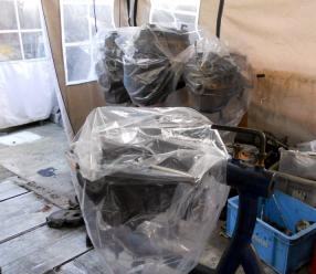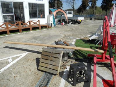 | 材料は買って来てあるのだが、一昨日から台風並みの強風!コンテナ6台は風とは無関係だがテント 7個の補修に追われっぱなし、、、 | ||