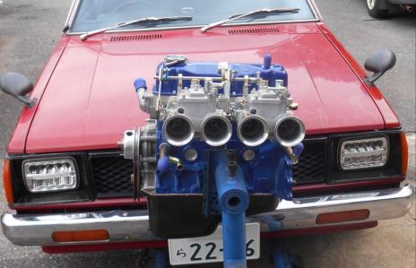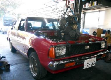 締まってる、刺さってる 一目瞭然。 標準のボンネット受けバーはピットイン作業では邪魔物なのでTSサニーは付けない。B110、サニトラなら このピン止めだけでボンネットを外さずエンジン脱着可能、B310はボンネットヒンジを外し周りを削正加工しボンネットが直立に開くよう加工が必要、コレはストリート仕様なので大掛かりな切った・貼った加工は行わずピンのみ取り付け。 入庫時にア〜してくれ コ〜してくれとリクエストされる事はまず無いので全車私の好き勝手にやってる。A型サニー乗りとは言え 皆がレース好きじゃあ無いだろう、ストリートチューンは好みも方向性も違うだろうから 納車後 自分好みにモディファイしてもらえればと思います |