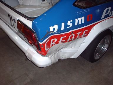 | 最終コーナーで他車と絡みクラッシュ&スピンアウト!! ぶつかった相手がよりによって数十年ぶりに再会したTS310サニーでの全日本ジムカーナーチャンピオン新堀サン。。。上手いんだから避けろヨ!と私が思っているのと同様、カブセて来るなヨ!と新堀サンも思ってるんだろうナ。。。 |