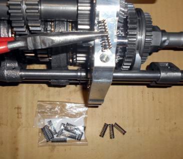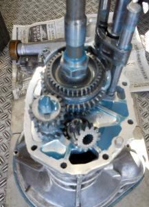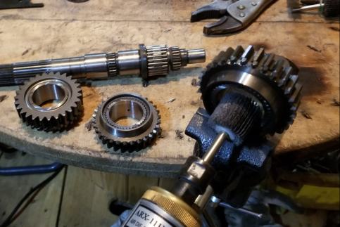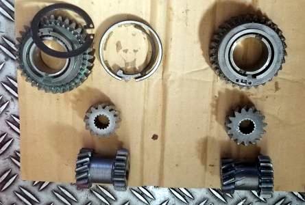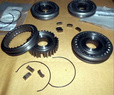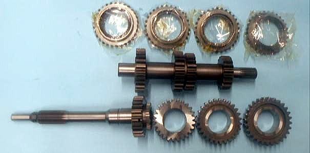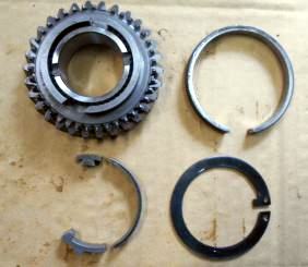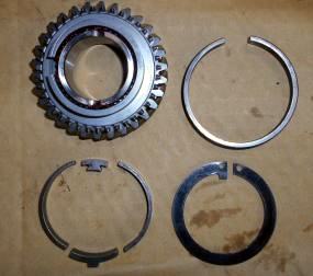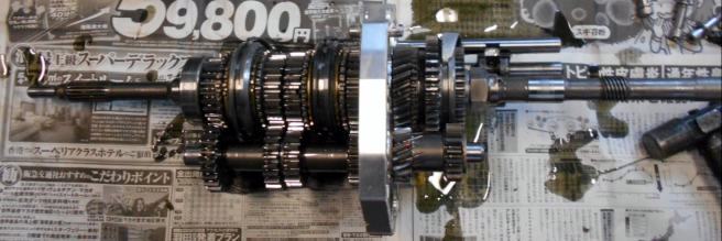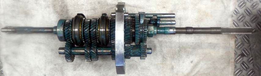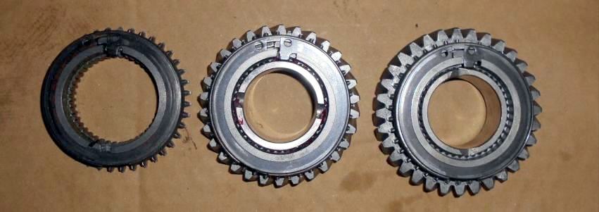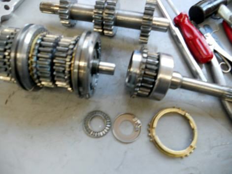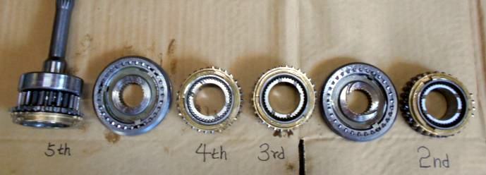 | 2年前の新規制作時にベアリング、OILシールを筆頭にシンクロもオール新品装着、シンクロの摩耗はほとんど見られない。半世紀近く前の昭和のミッションに有りがちな組み合わせの相性だと判断。2速だけ新品シンクロに替えといたから、じゃあ芸が無いので、5thシンクロを→2ndシンクロへ、4th→3rd、3rd→4th、2nd→5thへ総入れ替えし、カップリングスリースーブ+ハブ5th←→4thと、3rd←→2ndを入れ替え 組み上げ 入りの様子を見てもらう事にした。たかが1ケ 1.960円のシンクロ代をケチっている訳では無い、新品だからと言って絶対は無い、何度か走行したパーツでの入れ替えの方が良いはず。 | ||
