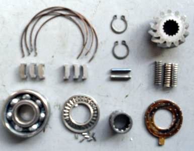 | カップリングスリーブとハブの間に有る キー 3ケX2、スプリング2ケX2、計960円を新品に交換。新車から廃車まで交換しなくても大丈夫なパーツですが