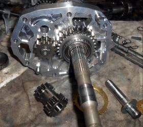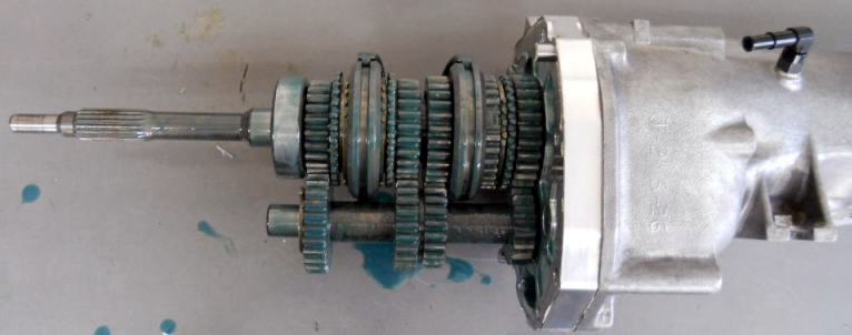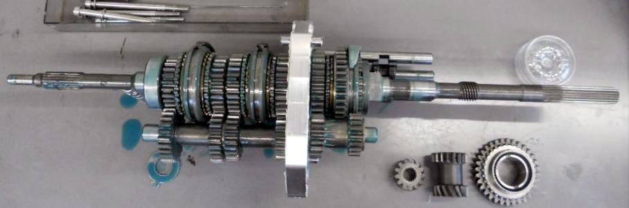 #15号車は 1st〜5thまで全てワーナーシンクロフルkit。筑波サーキットではレーシングスピードから1速シフトダウンする事は無いのでサーボシンクロでもかまわないのだが、標準サーボパーツはどれも半世紀物、はやしクンと相談の上