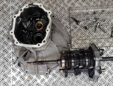 | 新品クロスレシオスパーギヤが納品待ち・欠品なので中古ギヤでスペアミッションを組み上げます サニトラ4速から部品取り。フロントケース(お釜)を使うのがメインと ワーナーシンクロのハブとスリーブを使います。 |