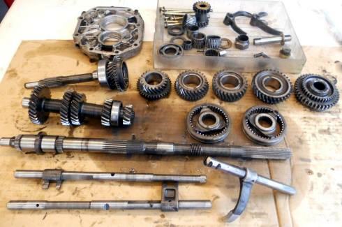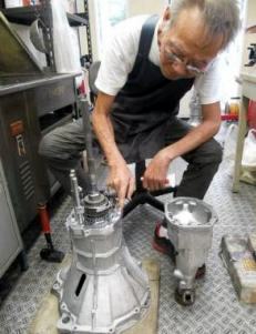 手前3本のシャフトを サーボシンクロ→ワーナーシンクロ変更に改造するため これから内燃機屋に加工に出します