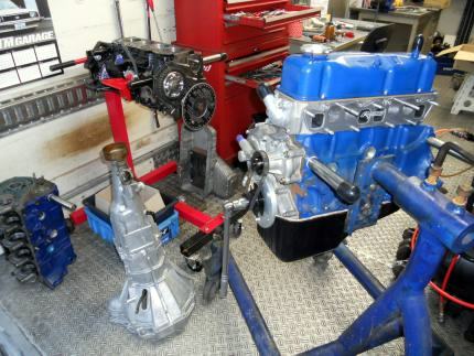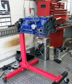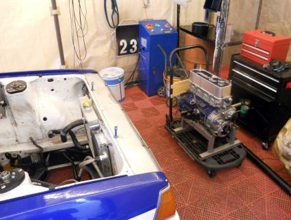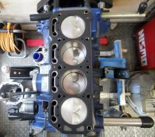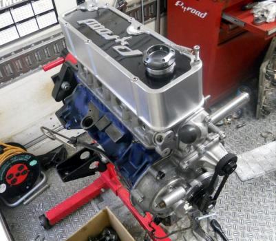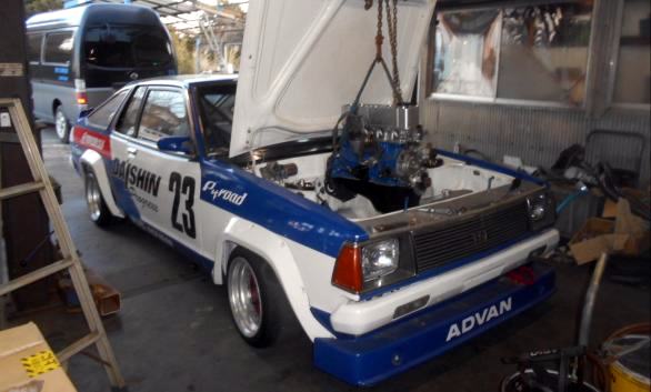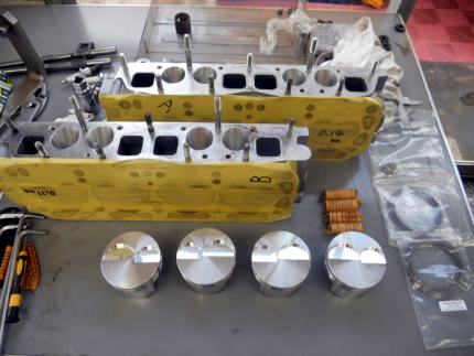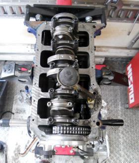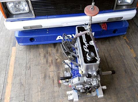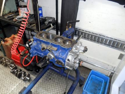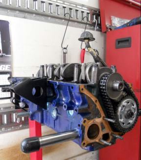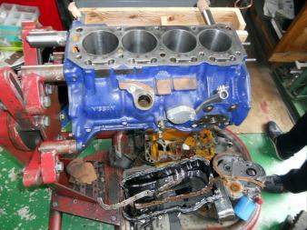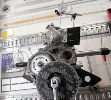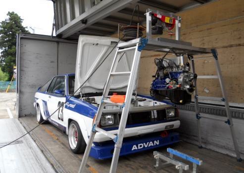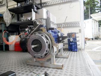 | ヘッドを載せ バルブタイミング調整終えましたのでスペアエンジン完成! 後は ロッカーカバー、OILパン、その他 を付け、エンジン台を載せ替え サービスカーに積み込むだけ | ||