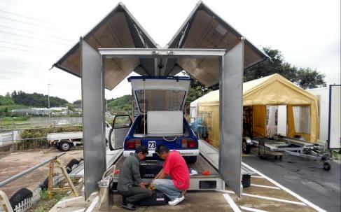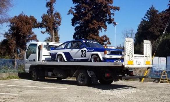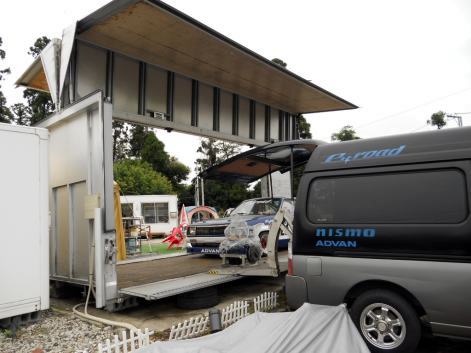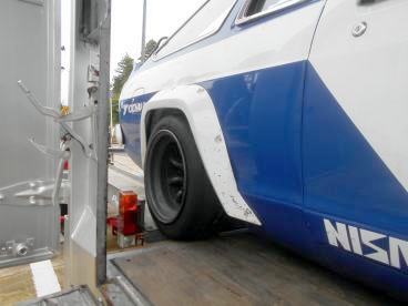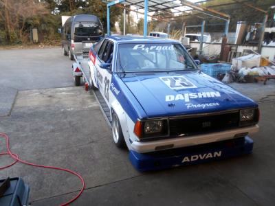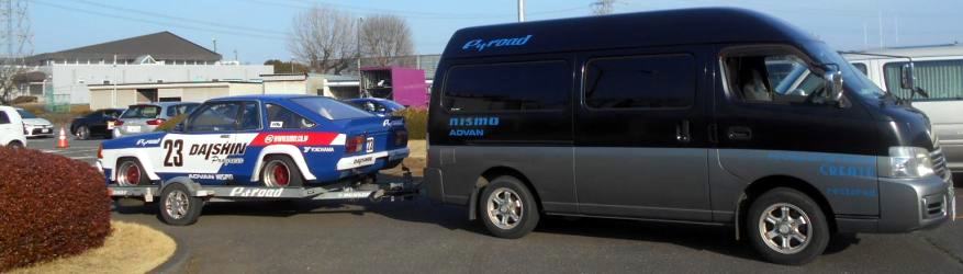 | 転がし予定日は天気良さそうだが、明日の天気予報は 曇りのち雨 最高気温8度。シトシト雨降る寒い中 積み込みやりたくないので今日の内に車両搭載。トレーラーはTSサニーしか載せないので 行く前のみならず、帰宅後もこのままでOK 当日の後かたずけ不要。サービスカーも普段から工具箱や荷物は積みっぱなしなので サーキットに向かう準備を特に行う事は無い。最大のメリットは1人で2台分 往復させられる事でしょうネ。セーフティーローダーレンタル代、ガソリン代、高速道路代、結構掛かりますよね?、#23マシンレンタル代が安価におさえらる一端です | ||