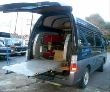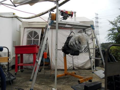 | トレーラードッキングで一人二役 。楽に1人でエンジン積み込み出来るパワーゲート付き。楽に1人でエンジン交換できる機材も積んであります。実際1人でやる事はありませんが、1人で出来る事を数人でやれば、より早く、より良くに、かな? | ||