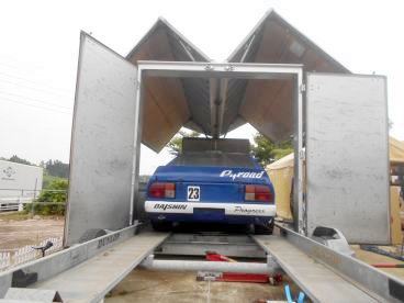 | 急にセーフティーローダー欲しく・・・でも別にサービスカー必要だから経費X2、パワーゲート付きトランスポーターは高いし・・・しばらくはトレーラーだナ | ||
