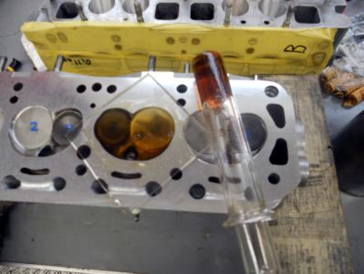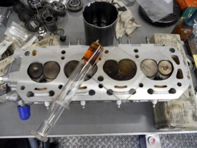 | 7/28富士でA12君 途中で機嫌悪くなっちゃったので、とりあえずスペアに載せ替え分解・点検して見ましょう このスペアは1度組み上げ完成品でしたが、お客のエンジンにヘッドだけ仮り組みするため外した物、ヘッド載せるだけですからコレは簡単♪ 降ろしたA12がド〜なってるか?ですネ |