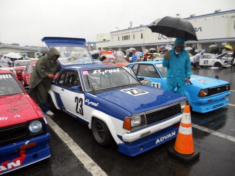 | 今回は一枠走行では無く 10/14(土)〜10/15(日) 2日間走りますので、前日はチェック走行用スリックを履き、予選・決勝は前回 新品皮むきしたスリックを装着。もちろんレインタイヤも用意してあります。 | ||