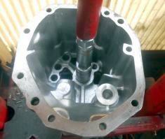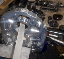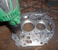 | 2.1ローはカウンターギヤ径が大きくセンタープレートを貫通しないので 強度を損なわぬよう 後々の整備性が悪くならぬよう加工 。チェックボールにOILが循環するよう60型T/Mと同様に穴開け加工。その他にも進化版60型の良い所は56Aに取り入れている。 | ||