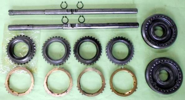| 持ち込み部品に直結5速ギヤはリバースアイドルギヤ1個のみ。1速メインギヤ(サーボシンクロ付)、小さい々カウンター1速ギヤ、ハブ+ギヤ