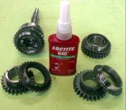 | キツイ新品コーンはオイルをたっぷり塗って圧入、ユルイ中古コーンはネジロック剤を使っていたが、今回はさらに強力・高価“はめあい用”を採用。56Aワーナーシンクロ化から早11年、ココが緩んだトラブルはたった1度だが