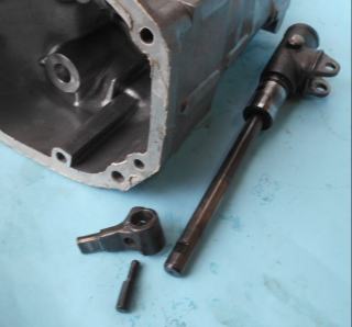 | ストライキングレバー&ロックピンは異常なし シフトレバーが真ん中に戻るよう加工、何度も加工し直し ちょうど良い戻りかげんに調整します。 |