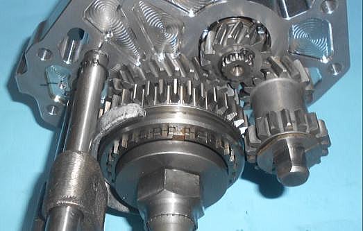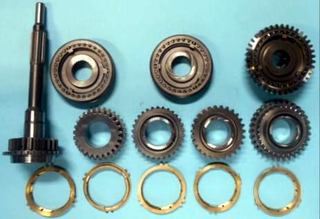 直結5速ミッション2速〜5速に移植し 標準サーボシンクロ→ワーナーシンクロに変更します。56型4速はメインドライブギヤのコーンが使えないため取り出せるのは3個、