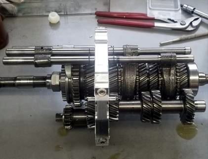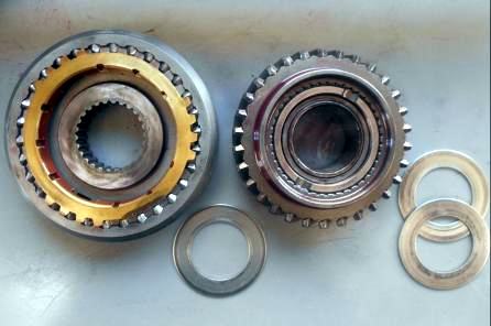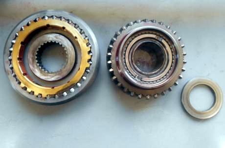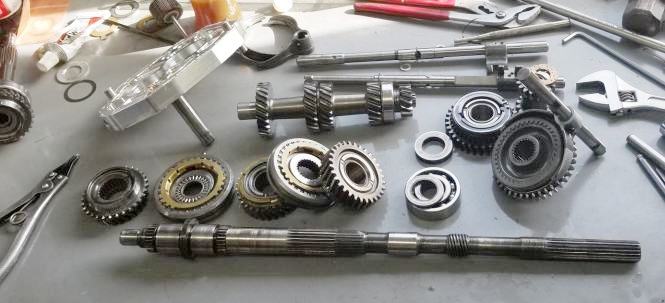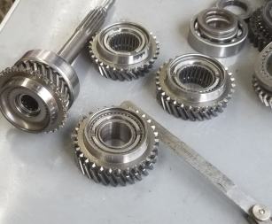 | 標準サーボシンクロからワーナーシンクロに変更 シフトフィーリングUPも有るが、ギヤスプライン圧入のコーンが緩んでスライドしちゃってるのを直すのがメイン。サーボはコーンが動いちゃってもシフトは出来るが メンティナンス側は見て見ぬふりは出来ませんからネ。昭和のワーナーシンクロは引きずりを起こさぬようにの微調整に時間を要します。個体差が有り 大丈夫な物も有るが 運が悪いとココの微調整だけでも丸1日以上掛かる事もあります。ベテランメカニックほどワーナーにしたがらないのは この辺が大変だからです |