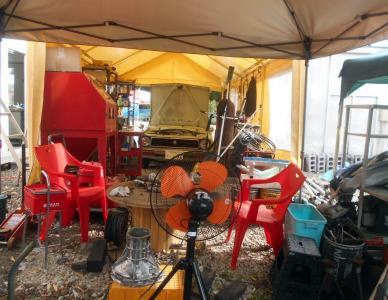 高圧温水洗浄機が有るし、反対のお部屋にはサンドブラスト、リューター、電動工具が使い放題、チューニング好きには楽しいオモチャがいっぱい!飽きるまで遊んでくれ |