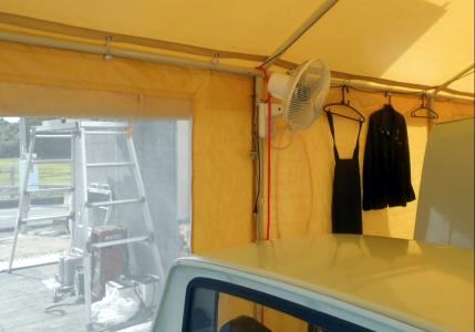 板金屋じゃあ無いので塗装ブースはありませんが、真夏のお天道様は