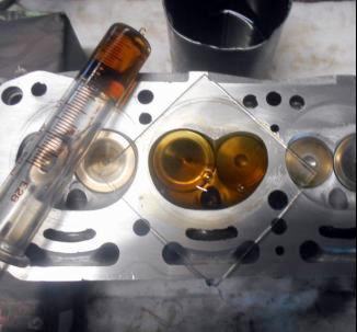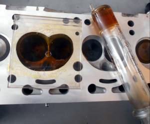 燃焼室に灯油を入れ簡易的なバルブ曲がりチェック