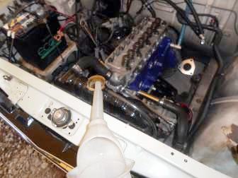 ヘッド単品で水漏れチェックを行いOKだが、良い事は続かないけど嫌な事は続くものなので、車両搭載状態で冷却水を入れ