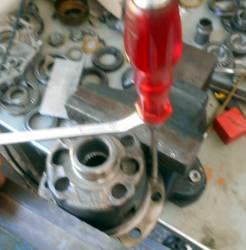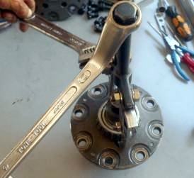 旋盤屋へ外注加工依頼前に全てのパーツを取り外しますが、分解前にイニシャルトルクを測定しておきます。AE86レビン&トレノのほとんどはデフロックに近い強烈なイニシャルトルク設定にしてあるのがほとんど、このLSDも同様でした |