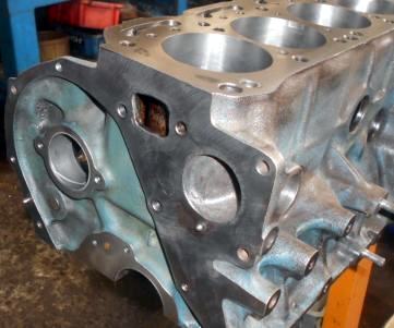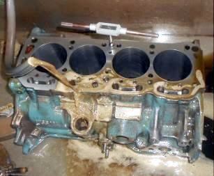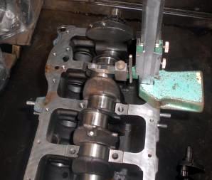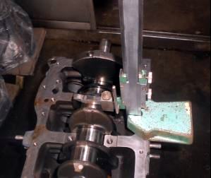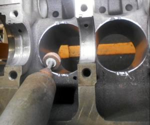 何をやってるのか?ツーと・・・A14クランク投入するとH-Beamコンロッドがブロックに干渉しちゃうので削正加工。ほんの僅かで