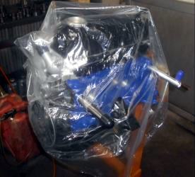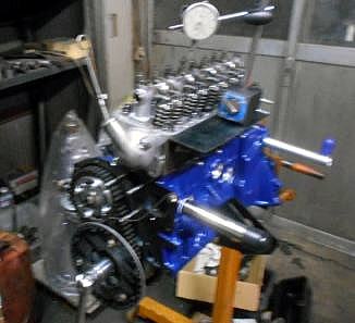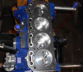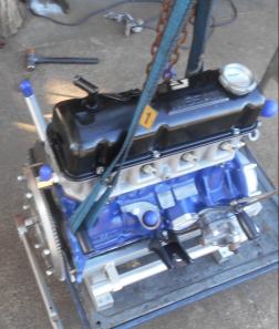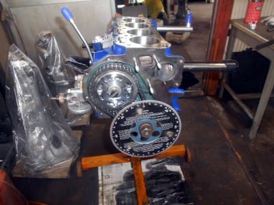 A14クランク対応 ピンハイト29.2mm鍛造ピストン入荷まで1ケ月ちょっと掛かるので一時保留。、ダミーヘッドを付け、オイルパンも仮止めし、せっかくレストアしたパーツを錆びらしたり汚したりしないよう