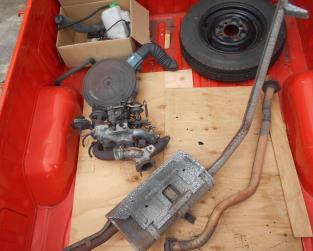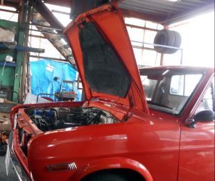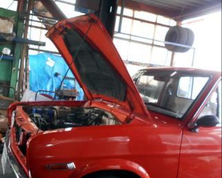 | ピットロードへの依頼では珍しいノーマルエンジンにキャブ・タコ足・マフラーを取り付けます。サニトラA12フルノーマルだから